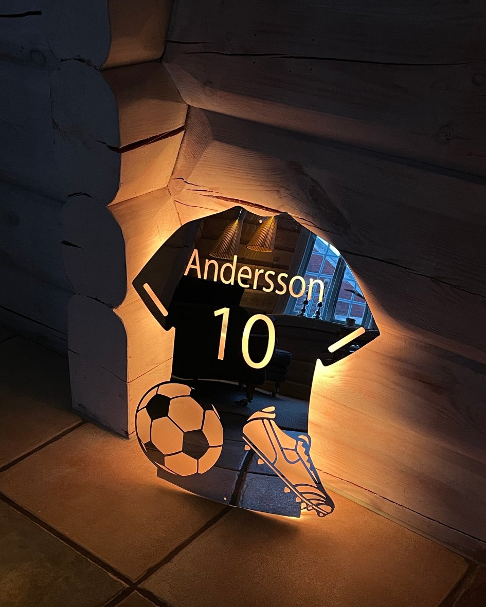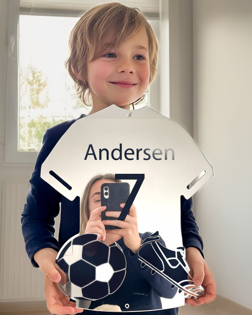 Tänk dig glädjen i deras ansikten när de ser sitt eget namn och tröjnummer visas på den här häftiga fotbollsspegeln!