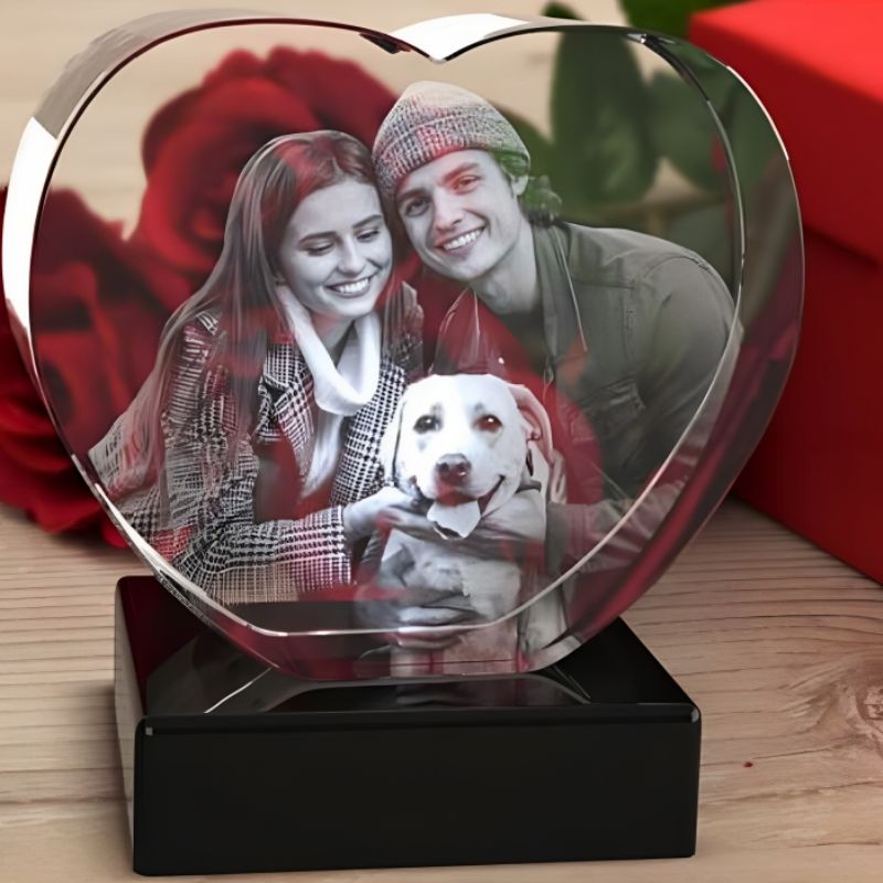Med hjälp av avancerad lasergravyrteknik förvandlas ditt valda foto till en djup och detaljerad 3D-gravyr i det genomskinliga kristallmaterialet.
