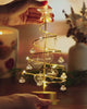 Vår guldpläterade familjegran är tillverkad med omsorg om detaljerna och utstrålar lyx och elegans. Den glänsande guldfärgen skapar en magisk bakgrund för de skimrande kristallerna, som vackert fångar och reflekterar ljuset.