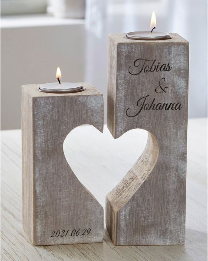Ljusstake Rustikhjärta | Personalisera Med Namn & Datum